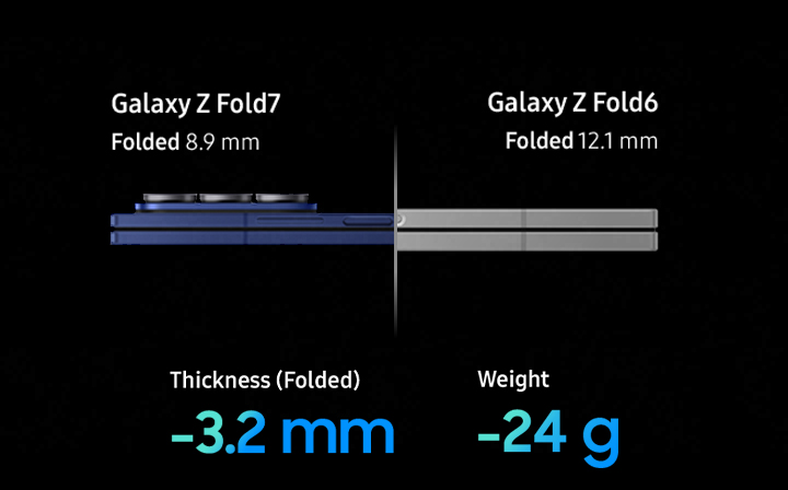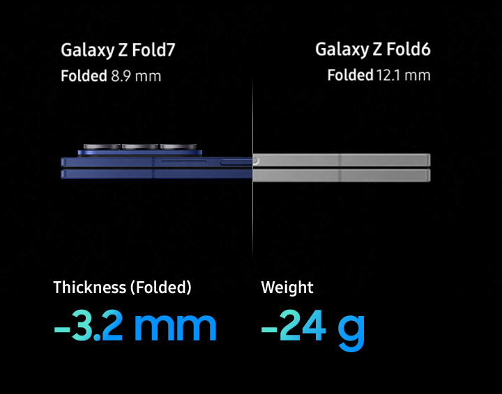 *Typical value tested under third-party laboratory condition. Typical value is the estimated average value considering the deviation in battery capacity among the battery samples tested under IEC 61960 standard. Rated capacity is 4272 mAh for Galaxy Z Fold7, 4273 mAh for Galaxy Z Fold6 and 4270 mAh for Galaxy Z Fold5.