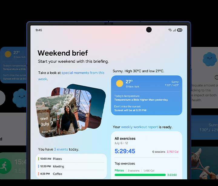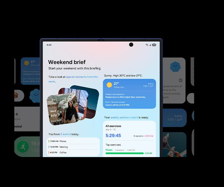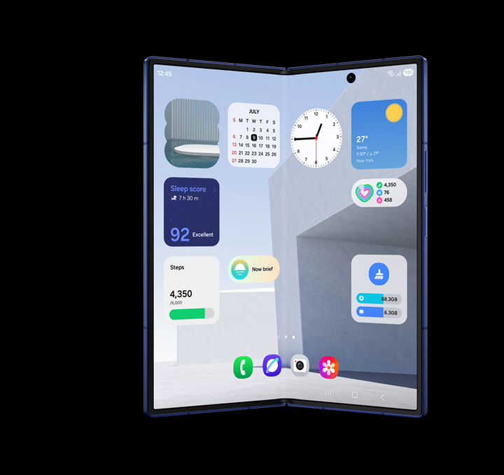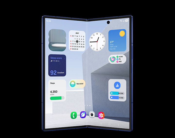 Our best, most personalised UI was built from the ground up for the both the massive main screen and the cover screen. With customisable wallpaper and interactive weather and gallery widgets, your Fold will be uniquely yours.